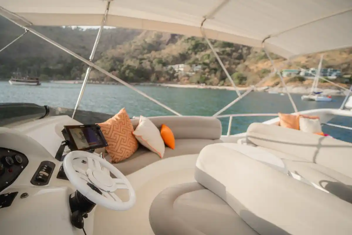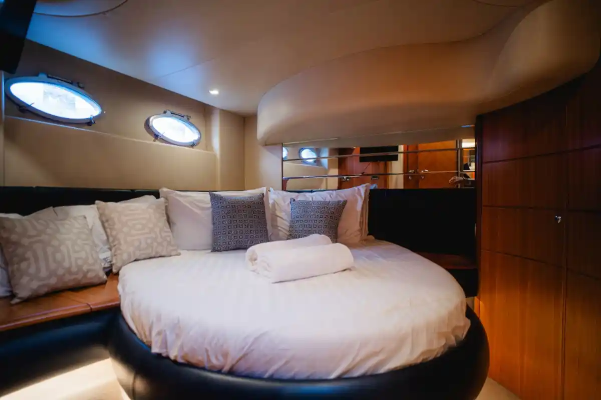 Enjoy spacious outdoor seating, a flybridge with panoramic views, and a cozy interior with two cabins for up to 4 overnight guests. An optional floating pool adds extra fun and safety at anchor — ideal for families or relaxed swim stops.