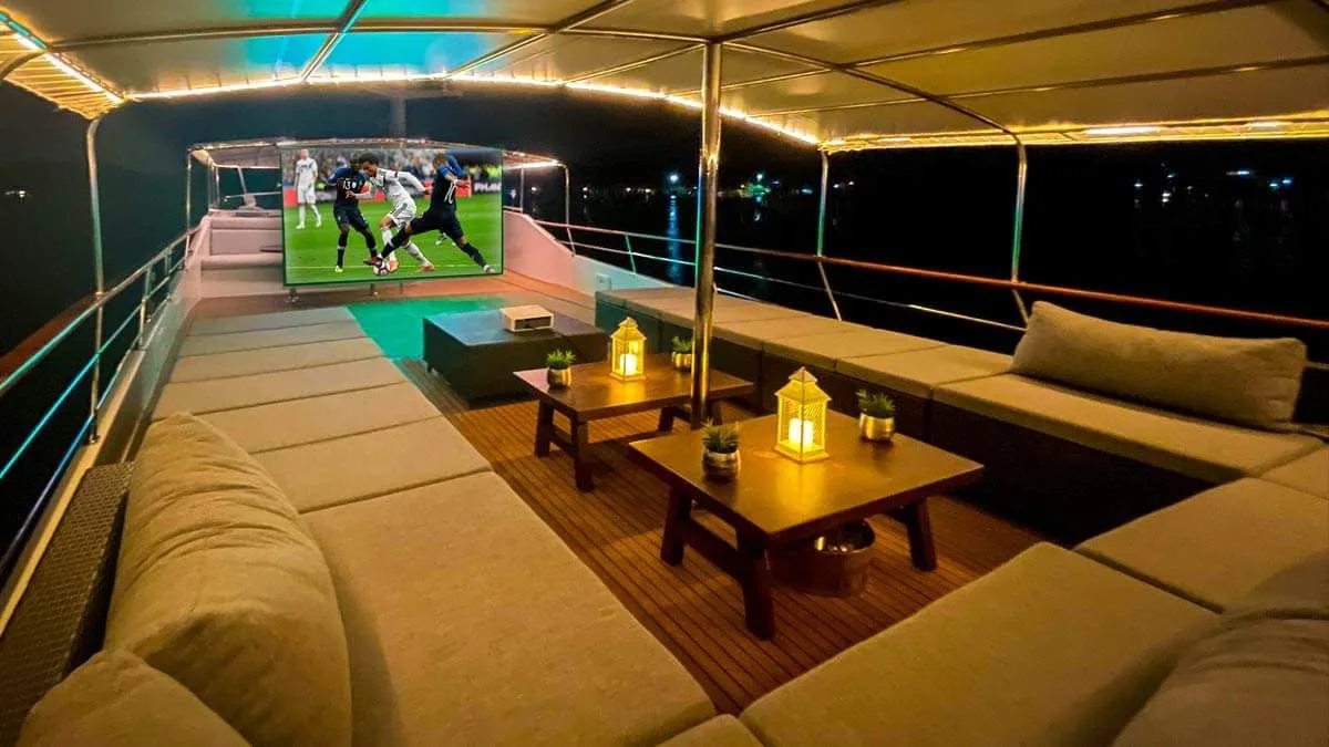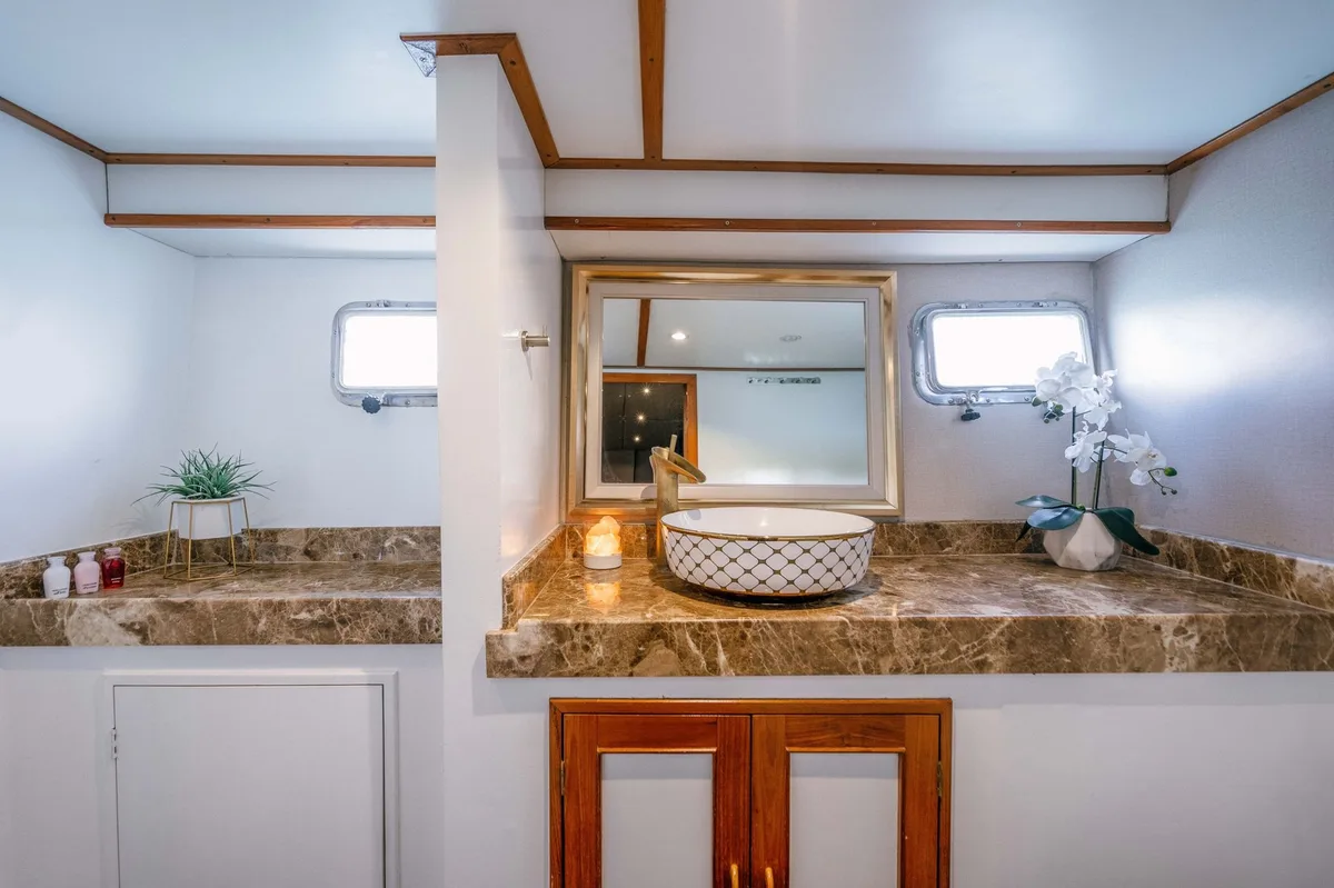 Designed to accommodate up to 12 guests overnight, the yacht features four elegantly appointed cabins, ensuring comfort and privacy for all. During day excursions, the spacious deck can host up to 50 guests, making it ideal for large group yacht charters or corporate yacht charters.