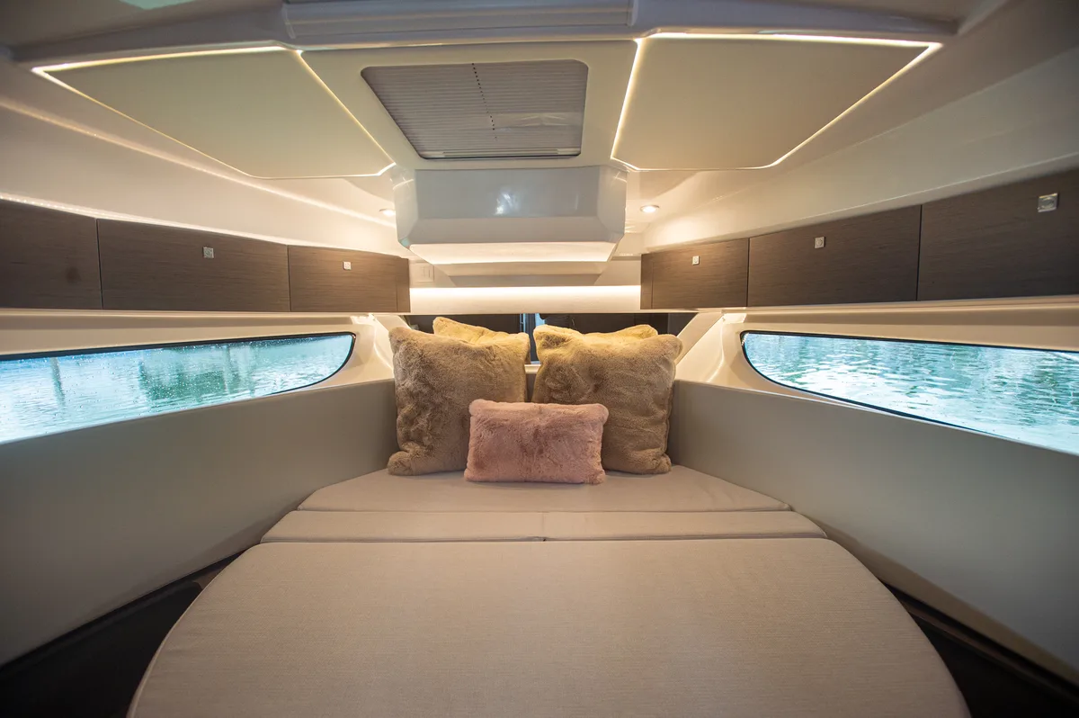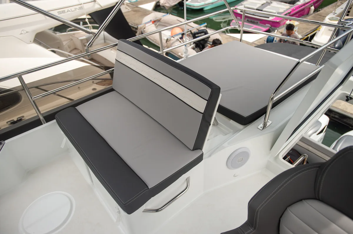 The Merry Fisher 1095 Flybridge, the flagship of its line, combines speed, fun, and comfort. Its flybridge offers the perfect way to cruise, with wind in your hair and endless horizons.