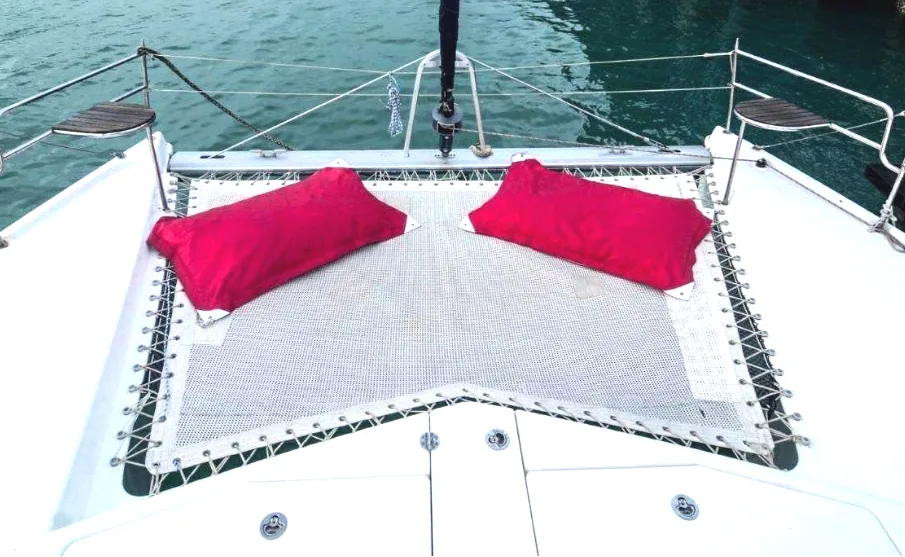 The multi-award-winning Leopard 38 model, designed by Morrelli & Melvin, is one of the best in its class. This charter catamaran in Phuket surprises with a spacious cabin and cockpit, and a detailed wooden interior in a traditional style. Ideal for tours in southern Phuket with up to 20 guests.