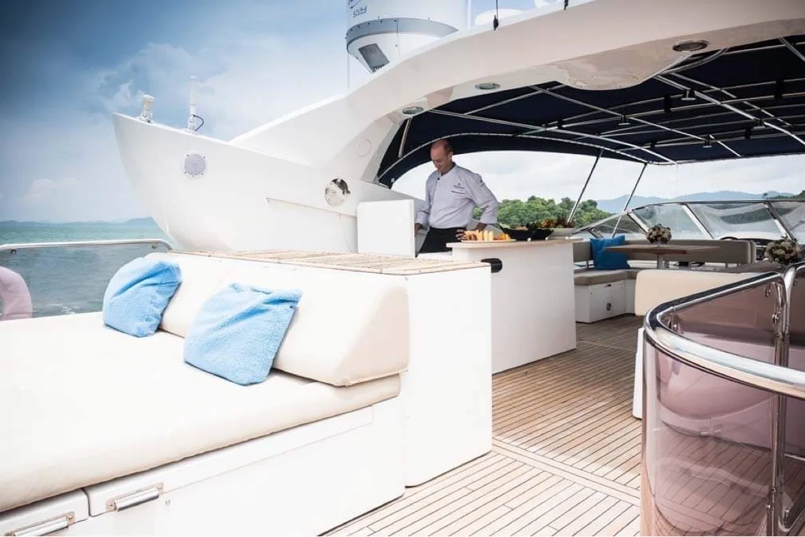 If you’re in the mood for a day that’s wonderful like your first girlfriend, the full-day trip to Phi Phi Islands on the Sunseeker 90ft superyacht DeLuxe is calling your name. With a capacity for up to 20 guests, you can take your crew along for an unforgettable adventure. What’s special about Thai yacht charters is that they combine luxury and fun, especially when you’re gliding over the Andaman Sea from Phuket to these stunning islands.