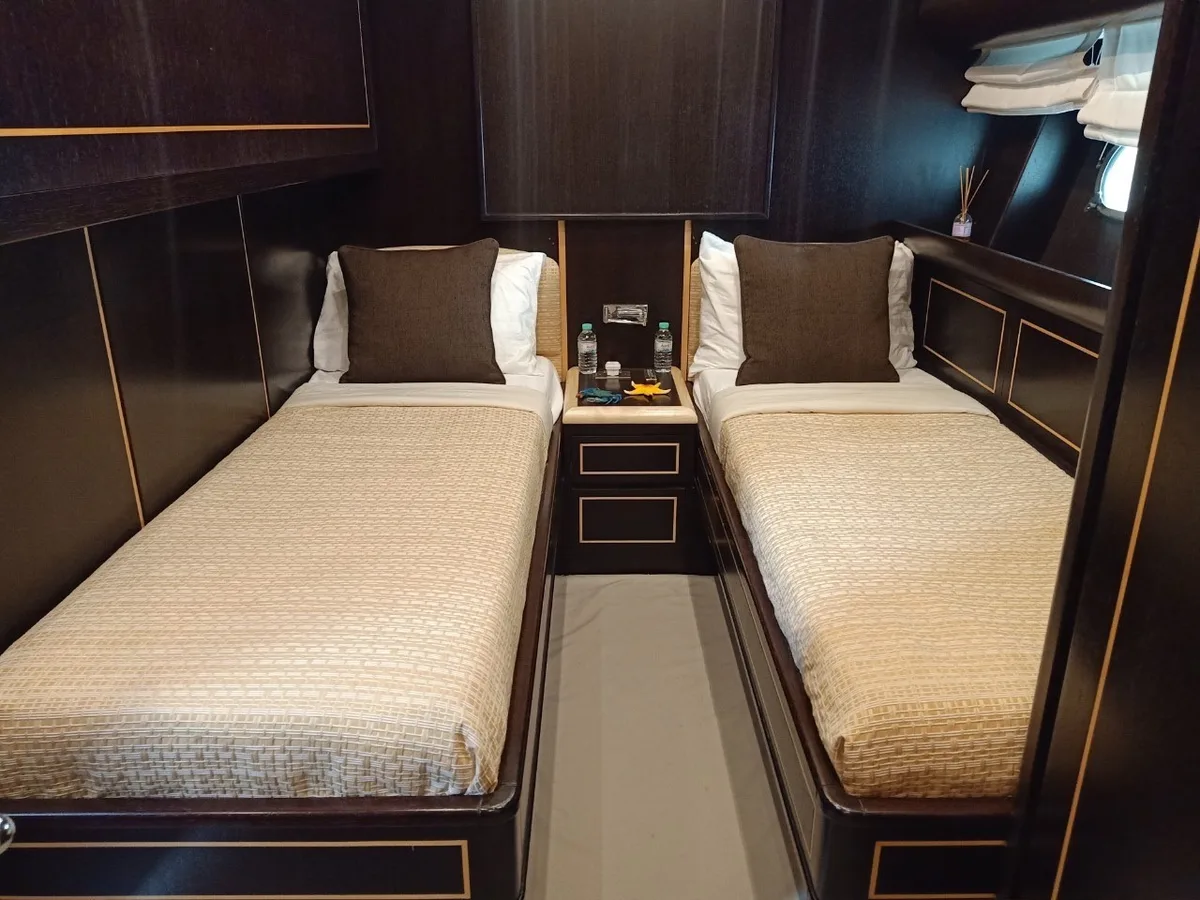 Our Panther is a grand motor yacht smelling still brand new after the refit in 2021. She features 3 cabins and takes up to 18 guests for an unforgettable yacht charter trip in Phuket.