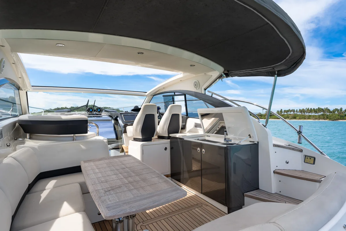 Discover the Samui Archipelago on our elegant Princess V39 — a luxury sports cruiser for Charter that feels stylish, spacious and effortlessly comfortable. With generous sunbathing areas, a beautiful lounge, and two cozy cabins, she is perfect for couples, families or small groups who want a premium yachting experience without the premium price tag.