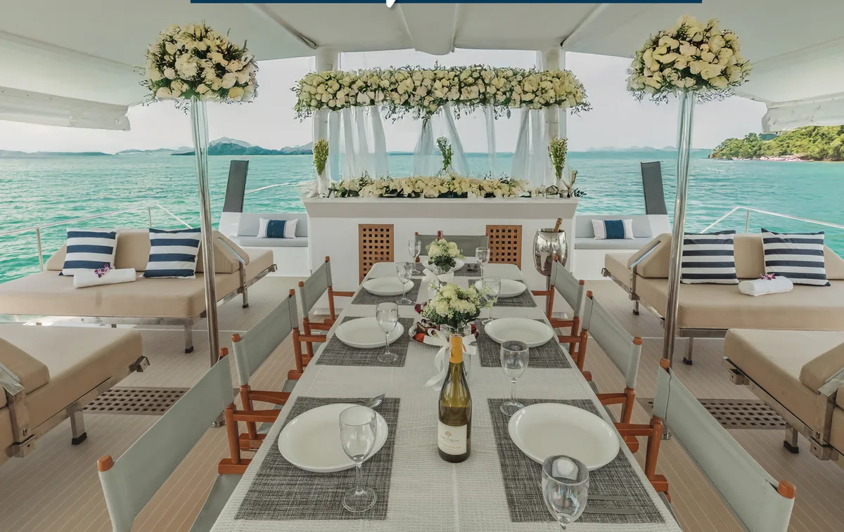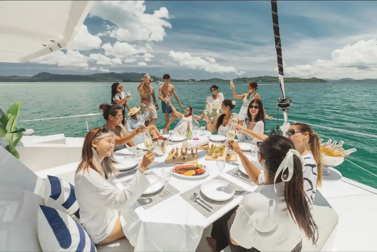 Looking for the perfect place to celebrate your birthday, wedding, or simply life itself? Selectione is the 55ft catamaran made for big, stylish parties. Hosting 10 to 40 guests, the private party catamaran in Phuket offers great drinks and food, as well as plenty of fun toys like a floating pool and an optional slide.