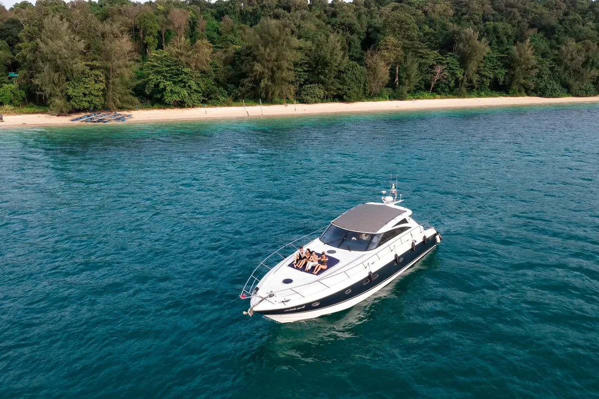Skip the crowded longtail boats and book the Bonnie for your Koh Hong Island (Krabi) adventure instead. This Princess Yacht 58ft handles Thailand's waters like a dream, and honestly, four hours feels perfect for soaking up Koh Hong's famous emerald lagoon without the tourist chaos.